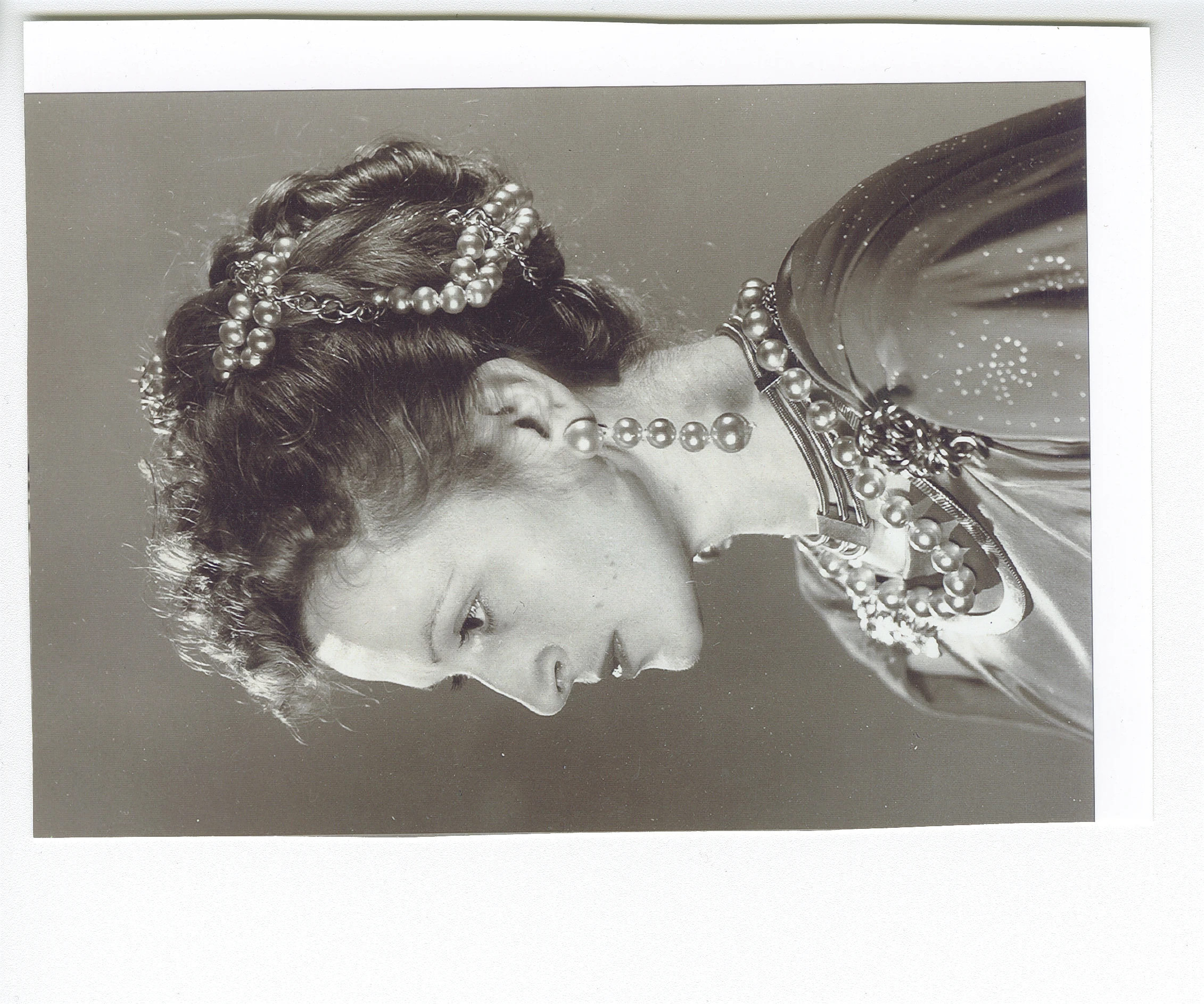 portrait photographique en buste de Claude Francis, de profil en costume pour Phèdre, dans le rôle-titre, compagnie du Théâtre de la Grande Hermine