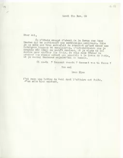 « Lundi fin Nov[embre] [19]08 », 2 exemplaires – 2 x 1 feuillet dactylographié