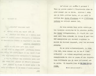 Lettre à André Gide, [sans date], 2 feuillets ms. R/V