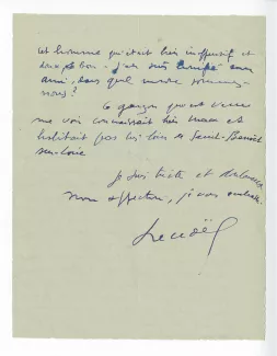 Lettre à André Gide, du 19 décembre 1944, envoyée de Toulouse, 12, rue des Vases, 1 feuillet ms. R/V.