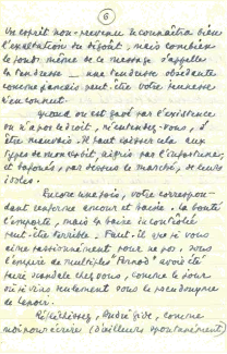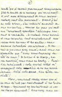 Lettre à André Gide, du 6 juin 1948, la date est portée par Gide, envoyée de Paris, « 5, rue de Tracy », 6 feuillets ms. R/V