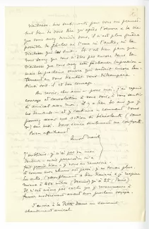 Lettre à André Gide, du 19 janvier [19]48, envoyée de Paris, « 3, rue Monsieur », 2 feuillets ms. R/V.