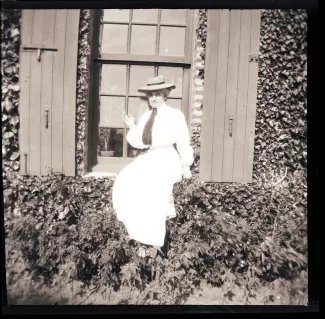 photographie d'une femme non identifiée, dans le jardin de la villa Robinson, chez les Flé, juillet-août 1905