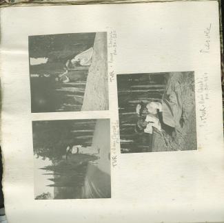 photographie de Marie Closset, assise sur un muret, avril 1909